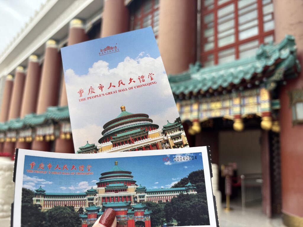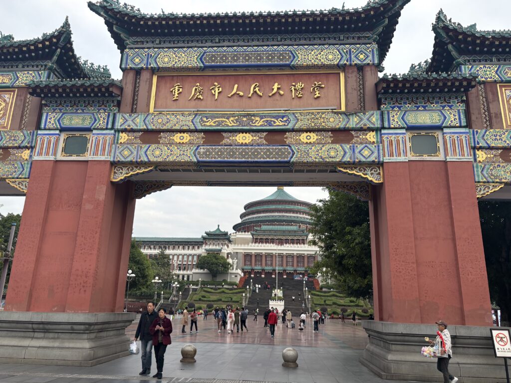 重慶人民大礼堂。入場にパスポートが必要。