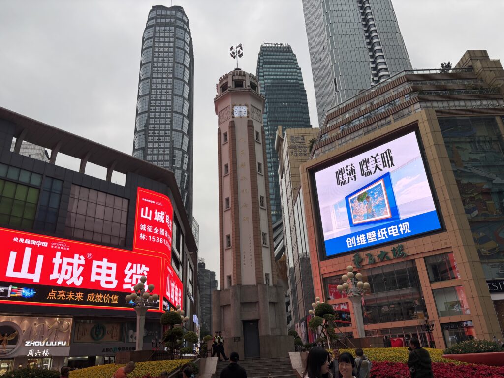 重慶を簡体字で書くと「重庆」。左側に一人立ち、右側の人が大の字になって写真を撮るらしい。一人旅だと完成しないではないか。。