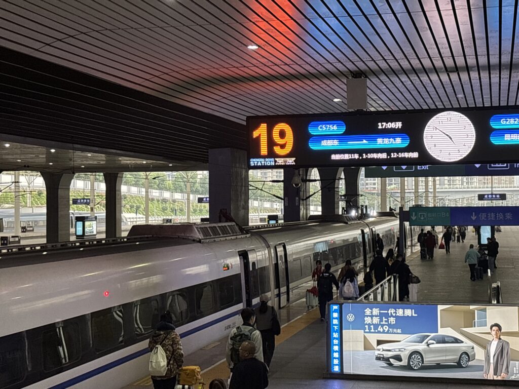 荷物をピックアップして高速鉄道の沙坪壩駅へ。今日はこれから成都方面に移動する。