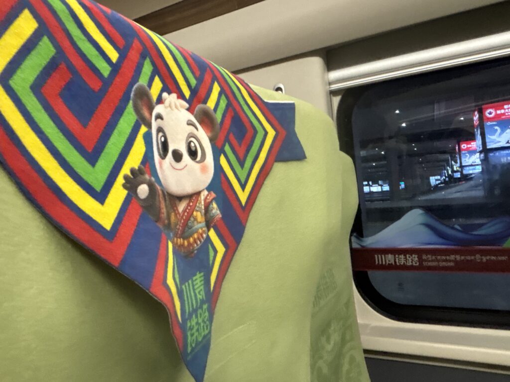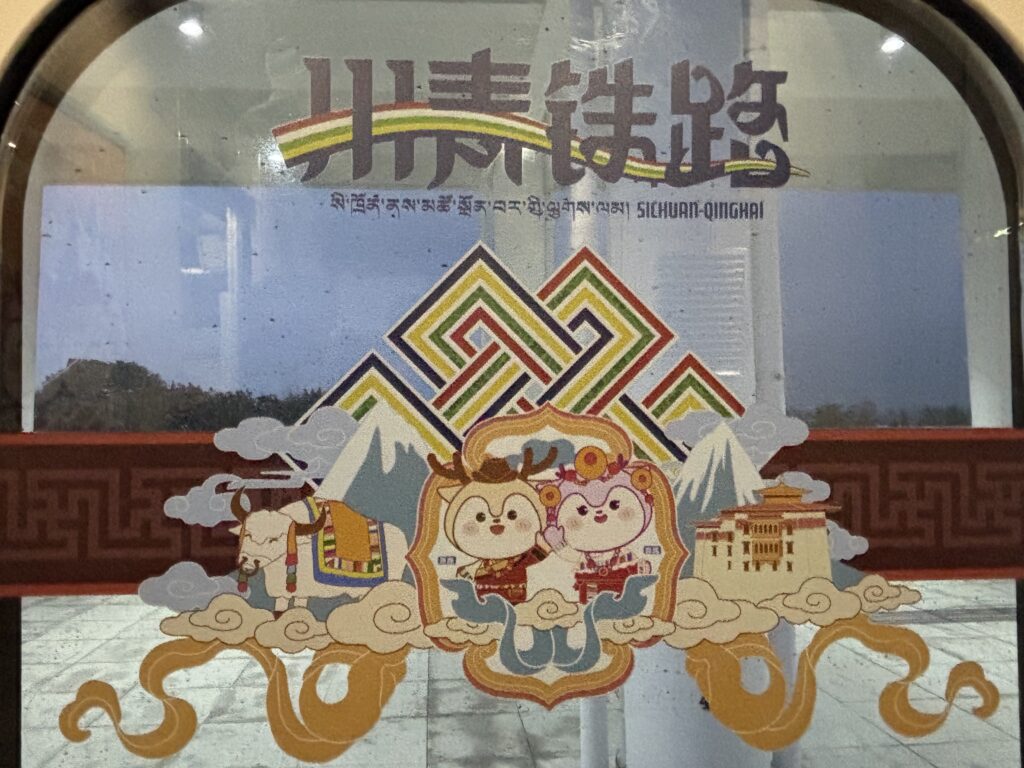 川青鉄道のキャラクターが描かれている可愛い電車だった。成都から西寧を結ぶ予定の路線らしい。だから鹿なのね。