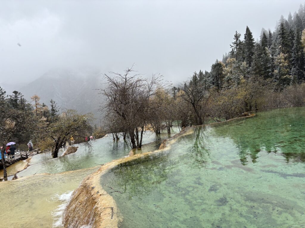 ここからは出口に向かって下っていく。五彩池のすぐ下にある黄龍中寺。