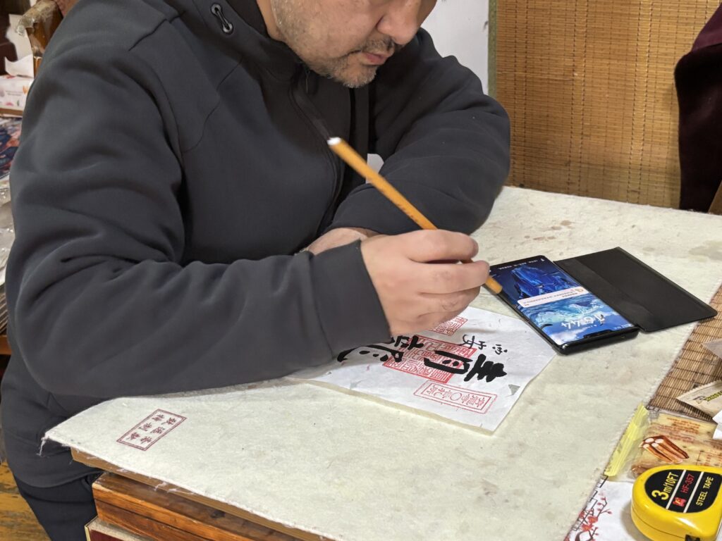 西安は書道の街でもあるので、こういった字が書かれたお土産も多い。