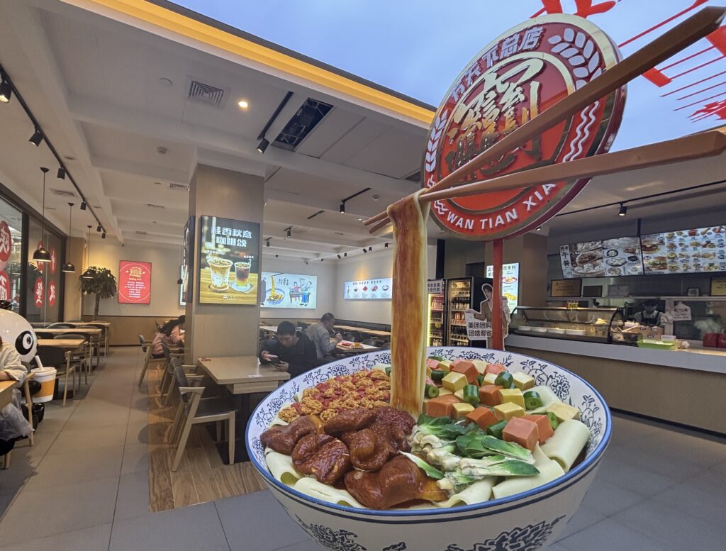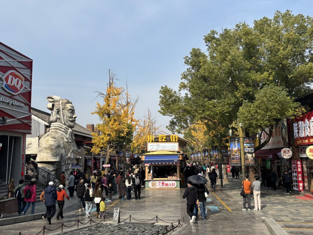中国の観光地は大体出口の近くに飲食店とお土産屋街がある。