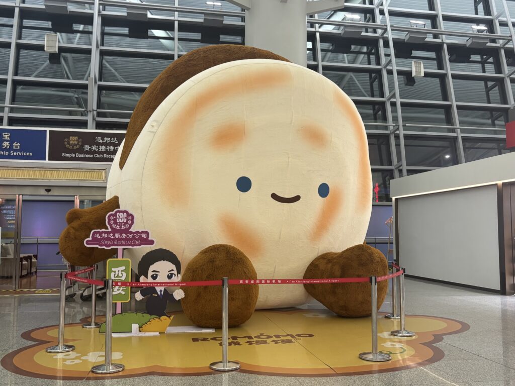 宿で荷物をピックアップして西安空港へ。この兵馬俑のゆるキャラは西安中にいた!