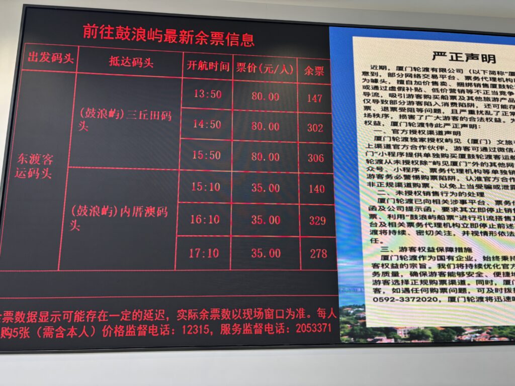 フェリーの行き先は、往路で乗車したフェリーターミナルと、廈門島の中心にあるターミナル行きに分かれていた。