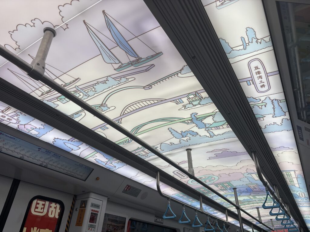 明日も早いのでメトロに乗って宿に戻る。廈門のメトロの天井が可愛かった!