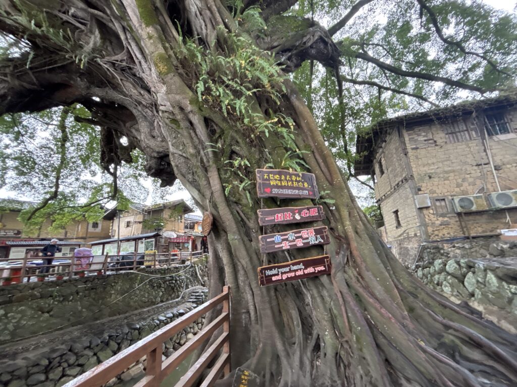二本のガジュマルが寄り添うように立っている夫婦の象徴らしい。やはり中国人は樹木大好き。